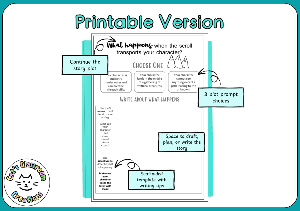 This comprehensive writing resource gives students everything they need to draft a successful narrative. This resource helps students succeed right away, offering them the fantasy-genre, story starters, and plot prompts. Oh, and it comes in a printable OR digital format, so you can cater to all learning needs in your classroom.