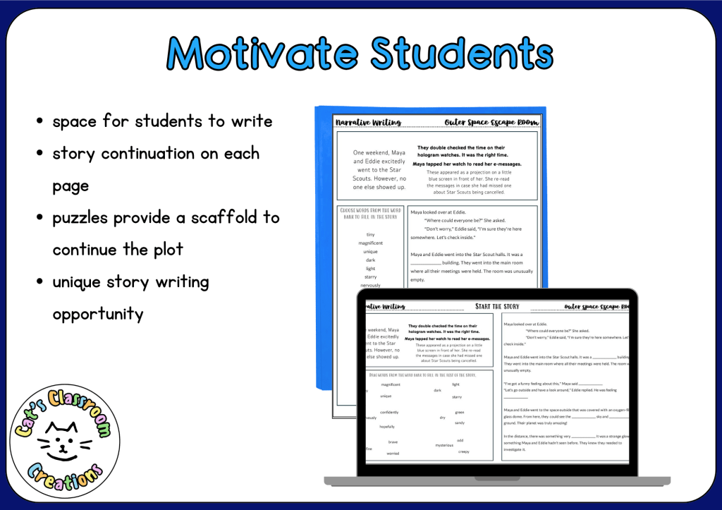 Thatβs exactly what this Outer Space Narrative Writing Escape does! It blends creative storytelling with interactive escape-room-style puzzles, making the writing process exciting, structured, and fun. If youβre looking for a way to motivate your students to write and enjoy the process, keep reading!